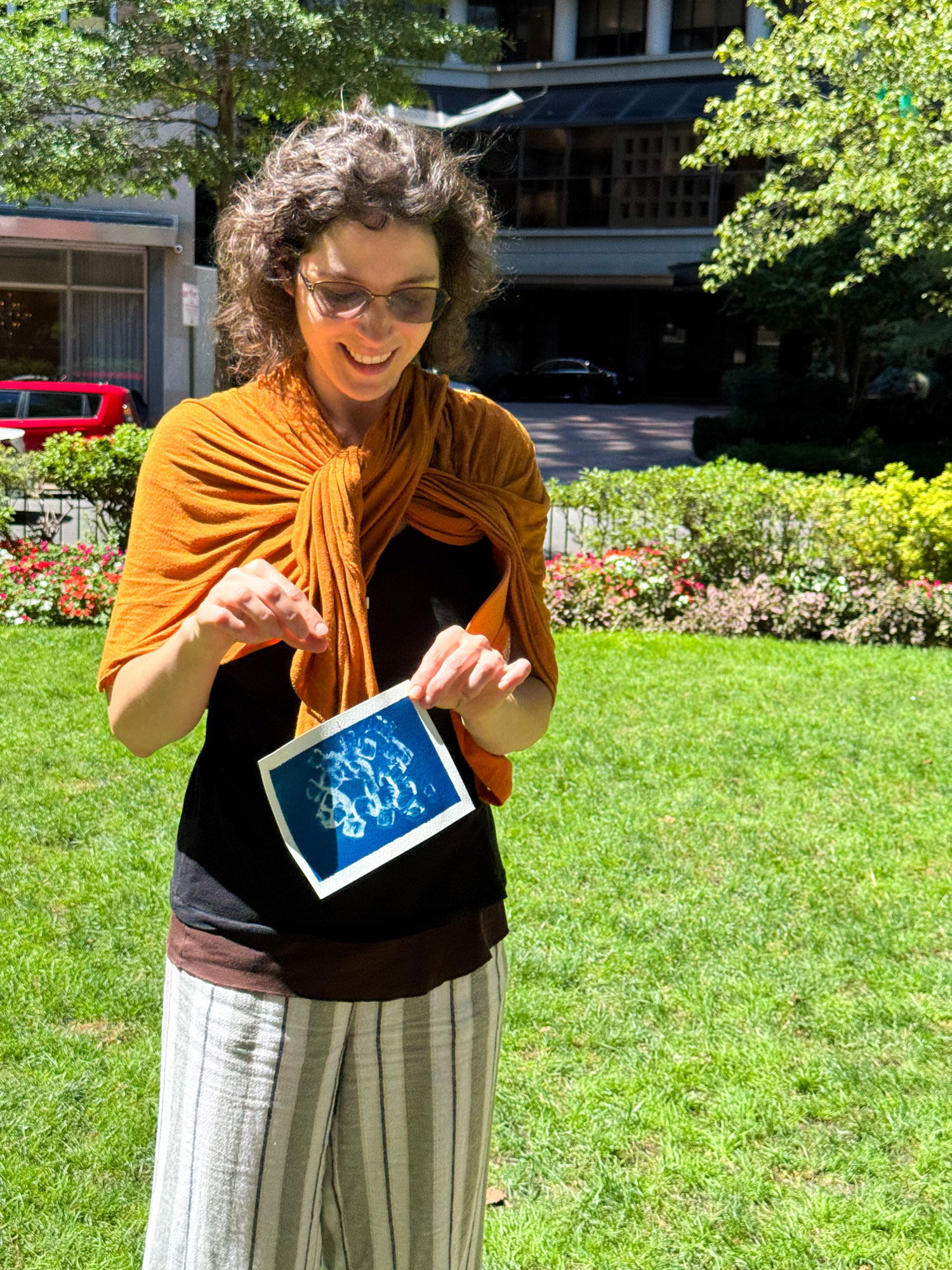 Community art and reflection are at the heart of Fragments. Our workshops, gatherings, and informal art jams are hands-on, interactive sessions. Participants are invited to create with the broken glass—composing designs, writing reflections, or experimenting with various artistic techniques. These expressions take many forms: cyanotype prints created under the sun; glass textures projected onto human bodies; ephemeral installations photographed and filmed; and meditative compositions made from glass, light, and shadow. Through these shared practices, the project weaves together diverse creative approaches into a unified meditation on care, beauty, and repair.