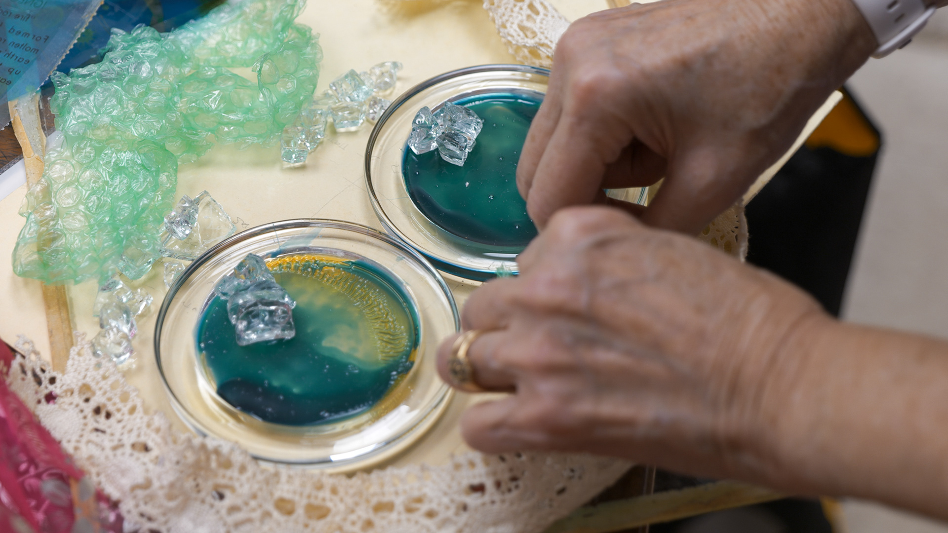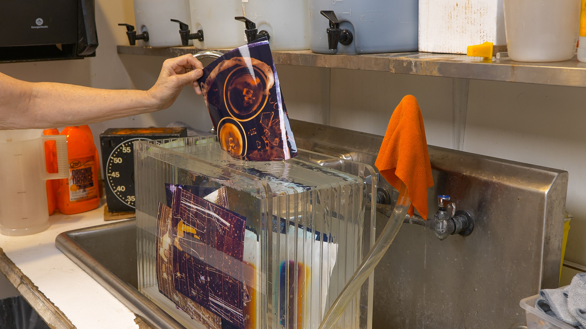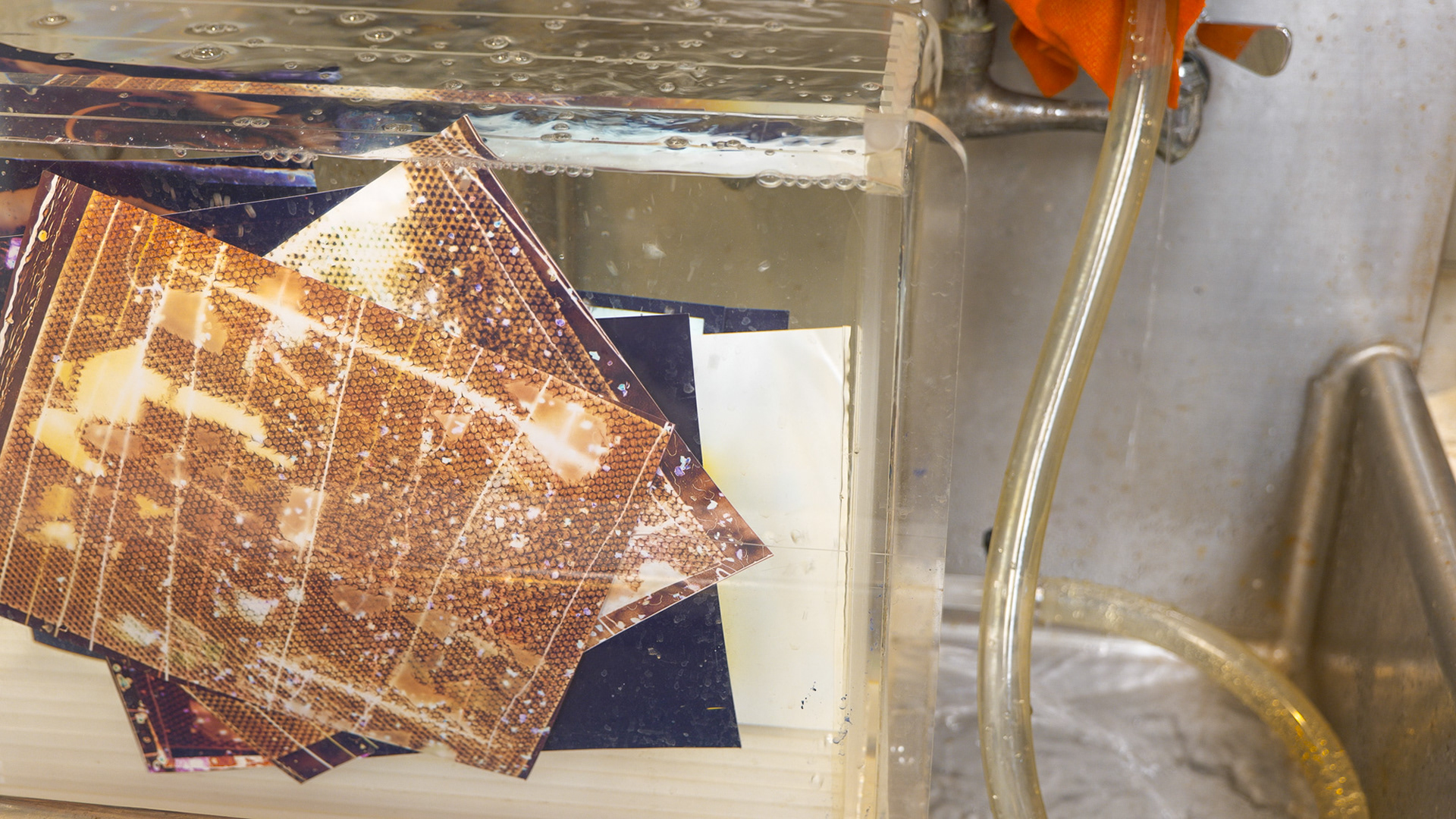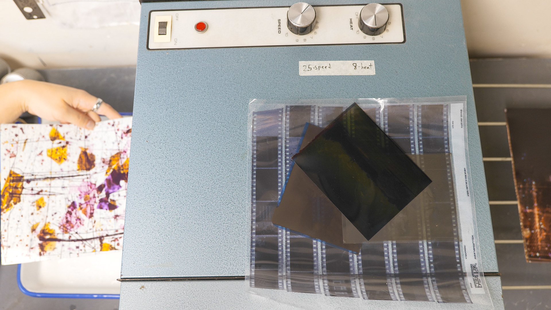 In collaboration with Fleisher Art Memorial, we hosted a special one-time color darkroom photogram session in collaboration with instructor Ahmed Salvador. Designed for students who had previously completed Ahmed’s color darkroom class, the session offered a chance to return to the lab, experiment with color photograms, and explore new ideas using the Fragments glass shards in a supportive, collaborative environment.